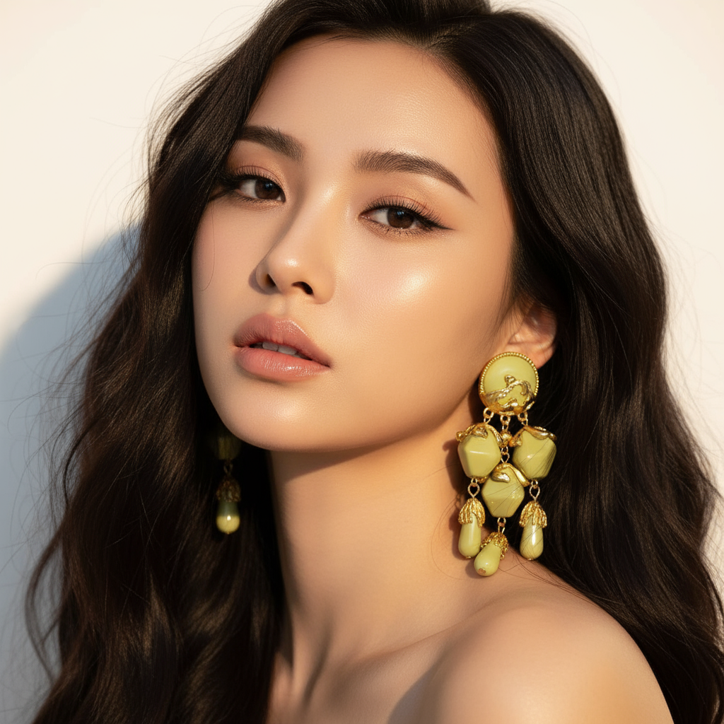 Exquisite Olive Green Resin Palace Tassel Earrings | ULZZANG BELLA