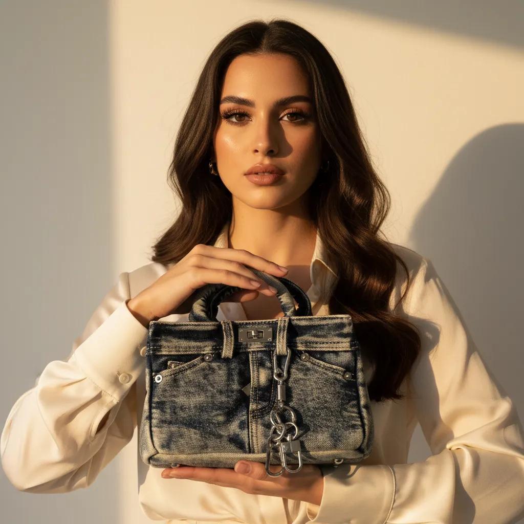 Vintage Denim Elegance Small Square Handbag | ULZZANG BELLA