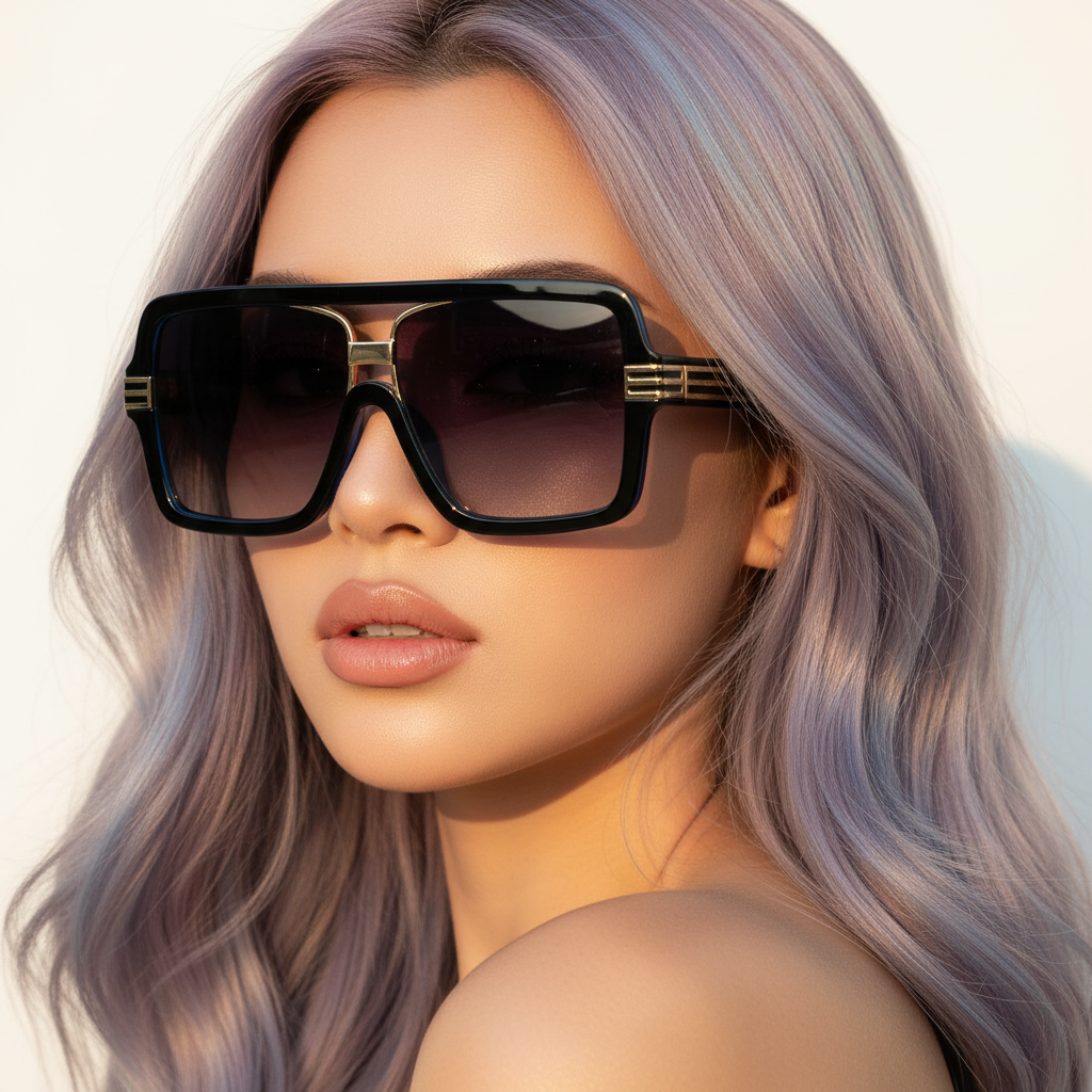 Opulent Oversized Square Sunglasses with Double Bridge | ULZZANG BELLA