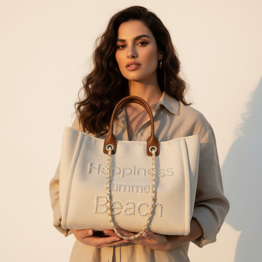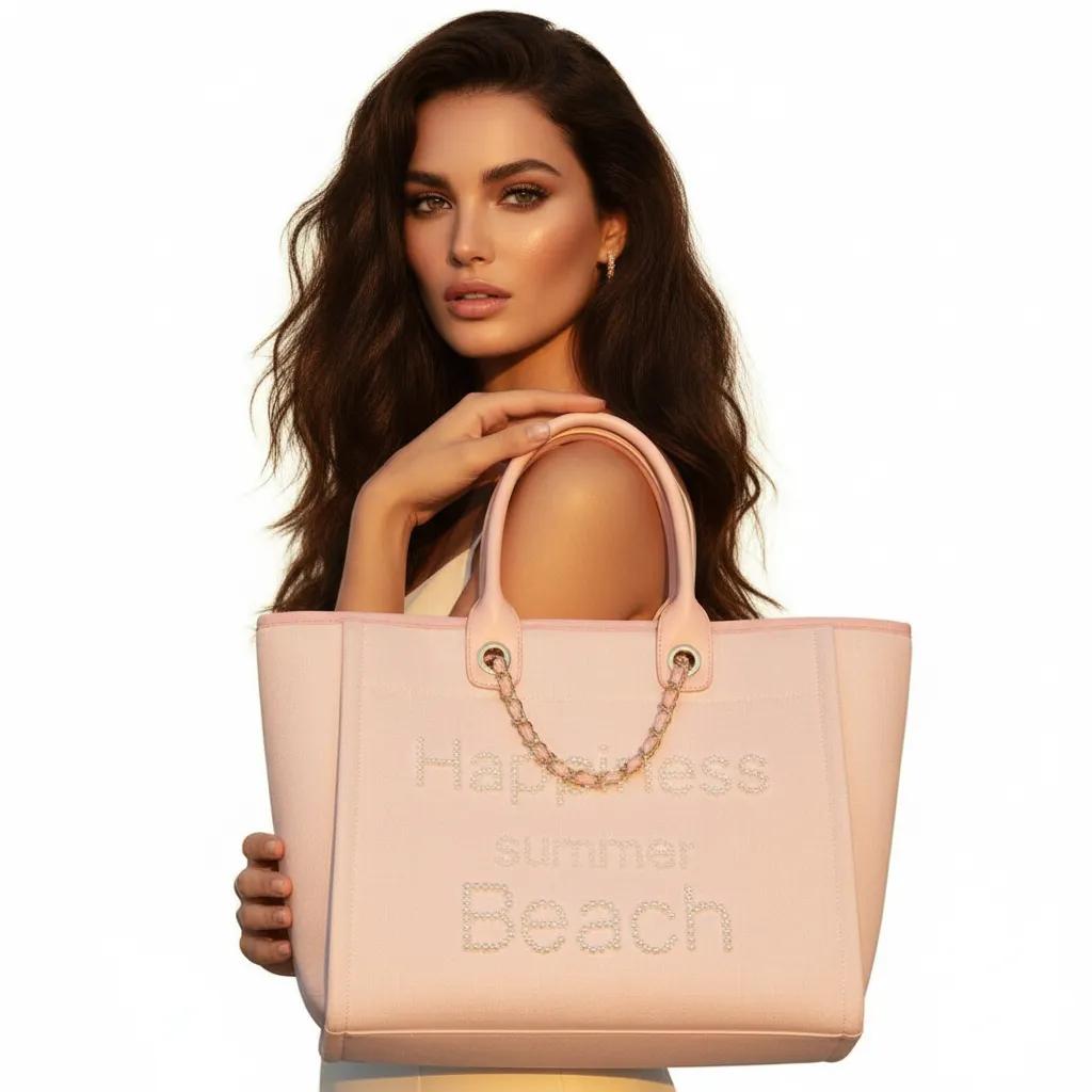 Canvas & Cowhide Pearl Beach Bag | ULZZANG BELLA