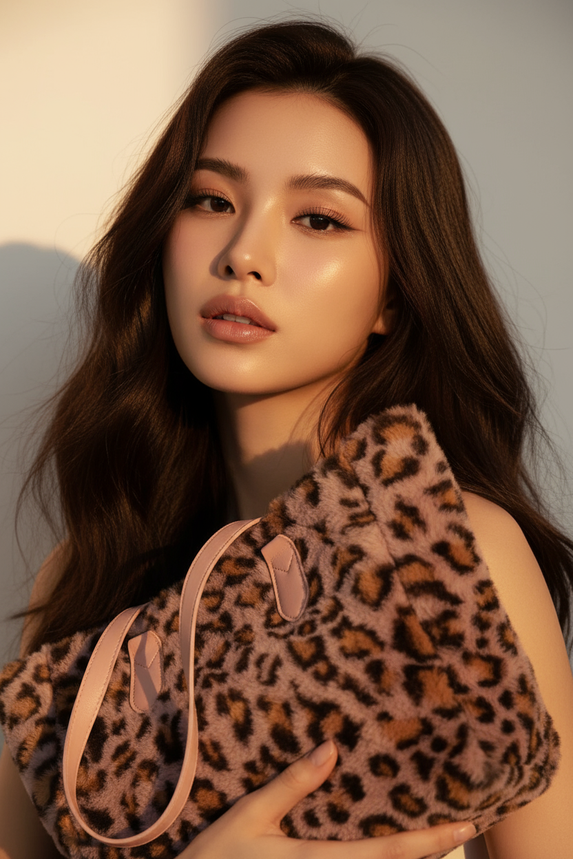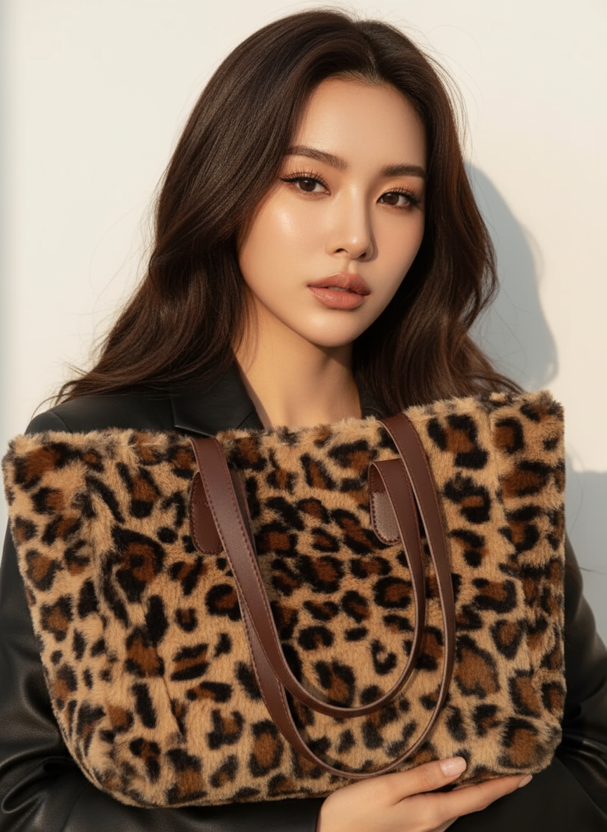 Chic Plush Leopard Fluff Tote Bag for the Elegant Woman | ULZZANG BELLA