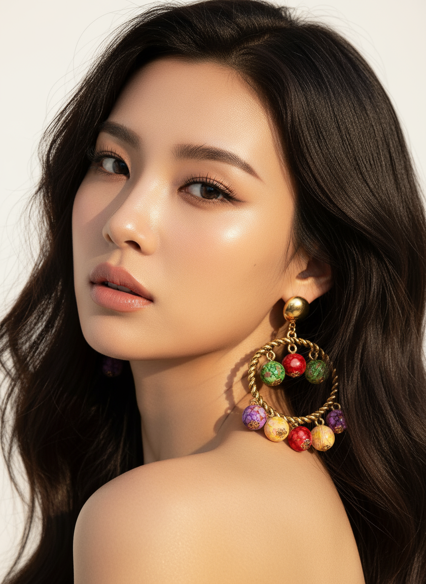 Exquisite Handmade Geometric Beaded Ball Drop Earrings | ULZZANG BELLA