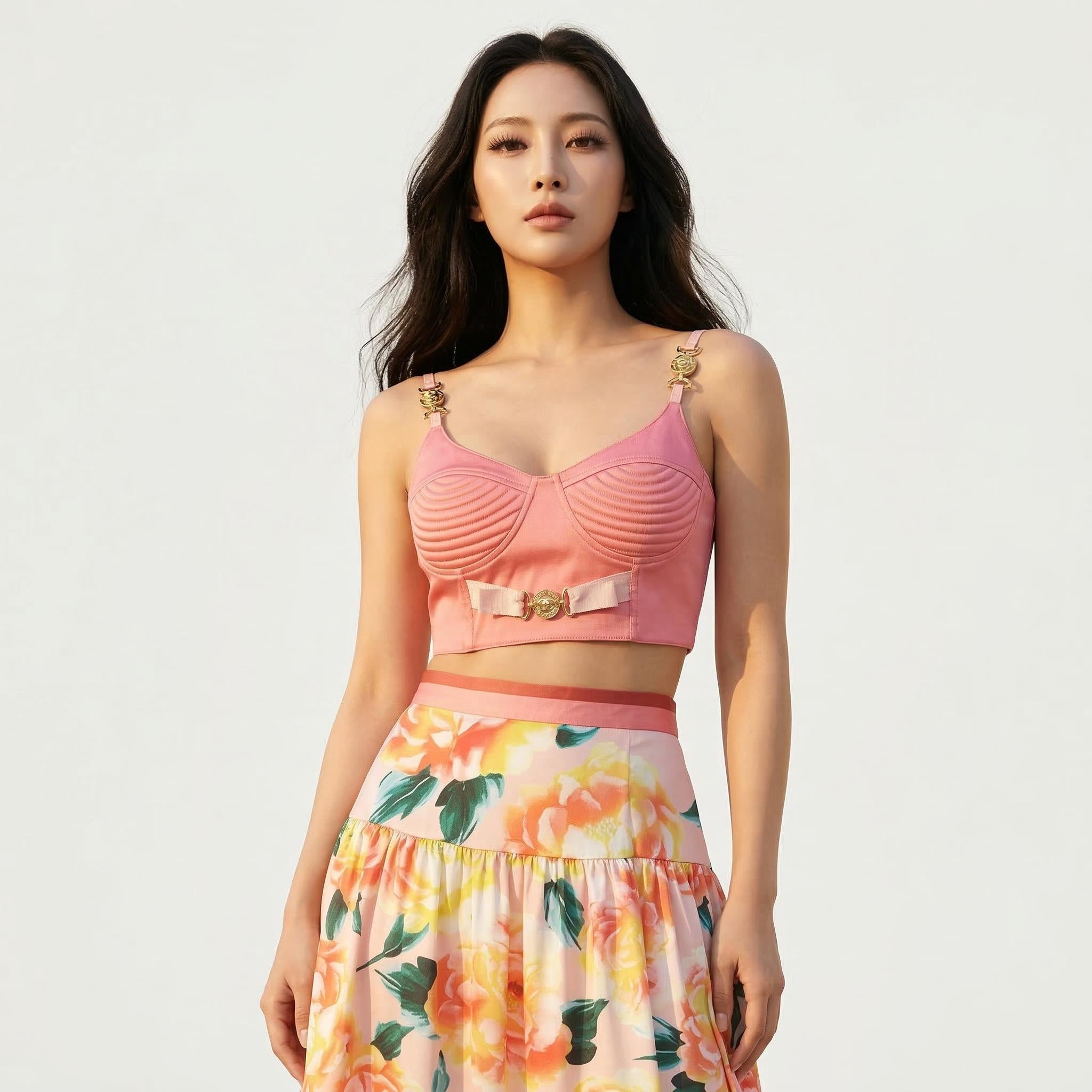 Ethereal Floral Elegance Midi Skirt & Bralette Set | ULZZANG BELLA