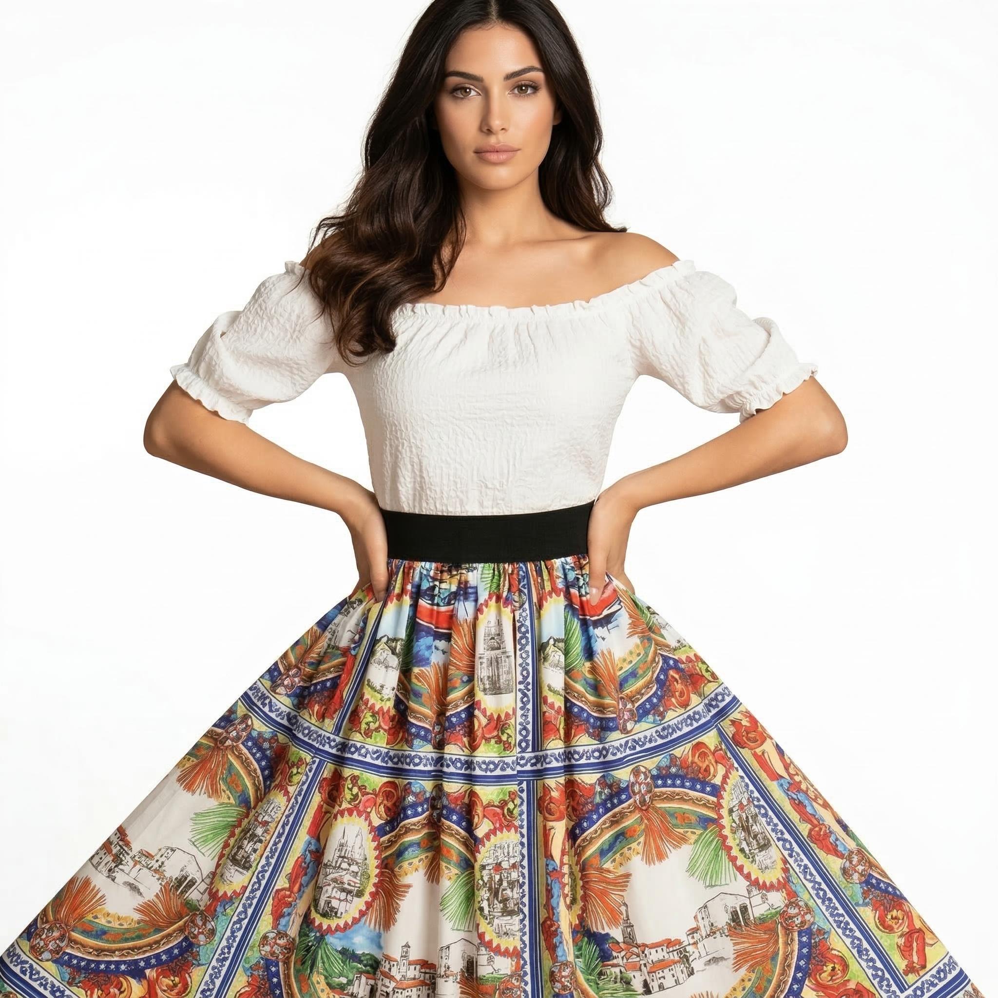 Timeless Italian Floral A-Line Midi Skirt in Luxurious Polyester | ULZZANG BELLA