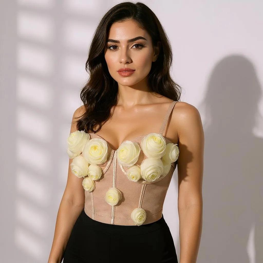 Top bustier senza spalline con motivo floreale 3D in lussuosa rete | ULZZANG BELLA