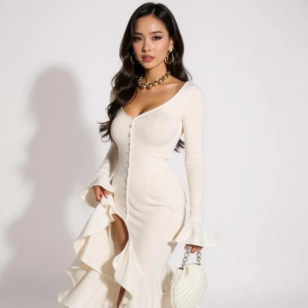 Elegante abito aderente con spalline e maniche svasate a fiori | ULZZANG BELLA