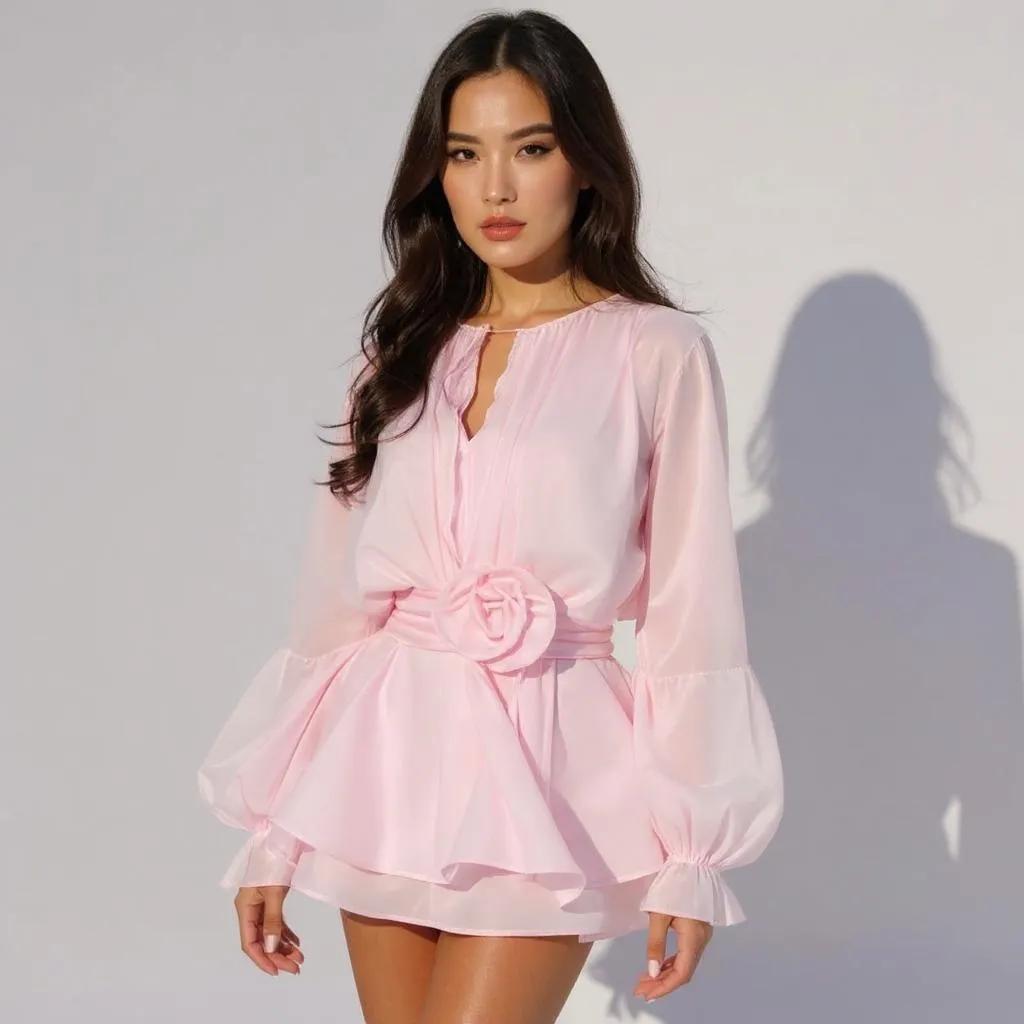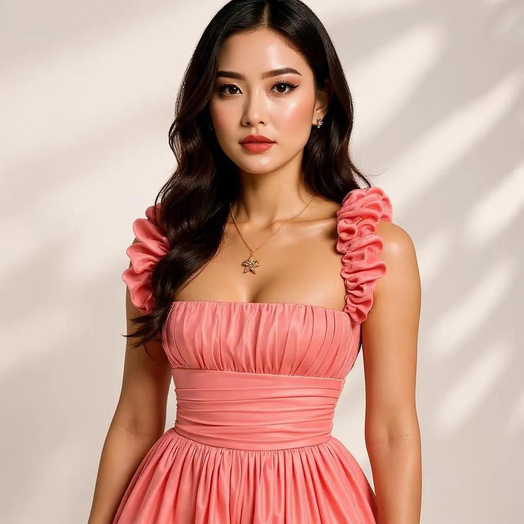 Elegante abito rosa a pieghe con spalle scoperte | ULZZANG BELLA