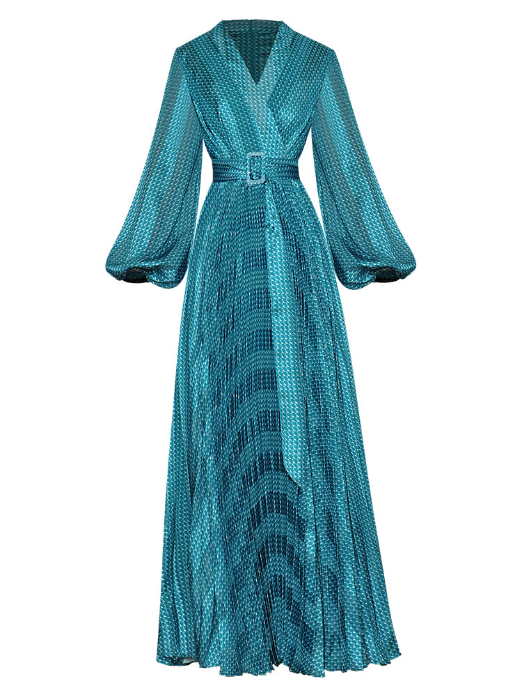 Elegante abito lungo plissettato con scollo a V per la donna sofisticata | ULZZANG BELLA