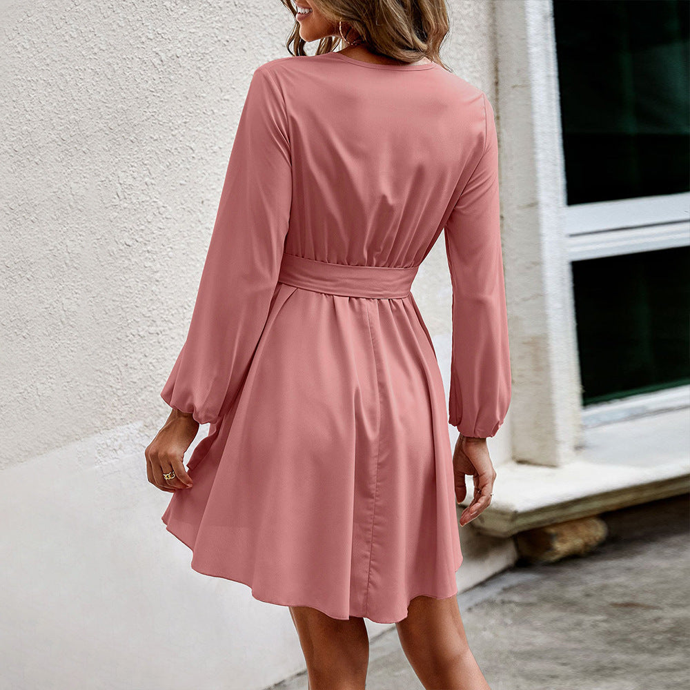 Elegante abito rosa con scollo a V e lacci per l'eleganza autunnale e invernale | ULZZANG BELLA