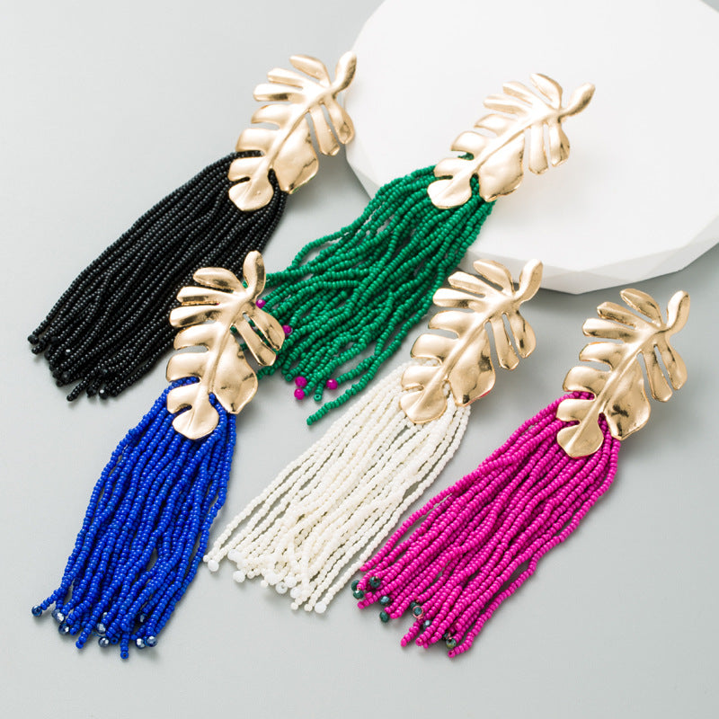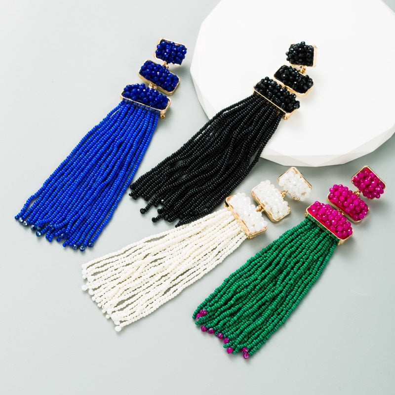 Deliziosi orecchini lunghi bohémien fatti a mano con perline di riso | ULZZANG BELLA