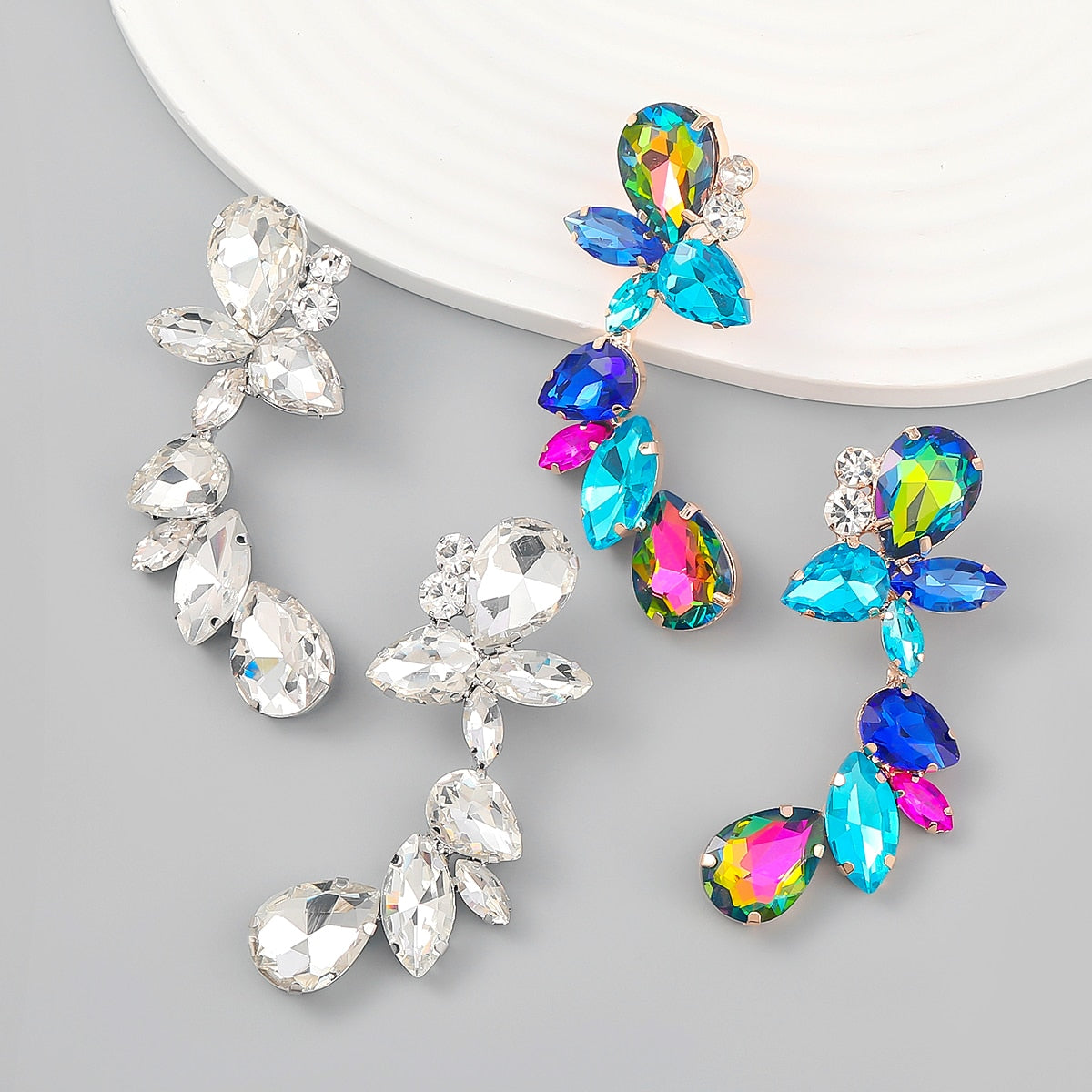 Orecchini pendenti floreali con strass - Eleganti gioielli per matrimoni e occasioni speciali | ULZZANG BELLA