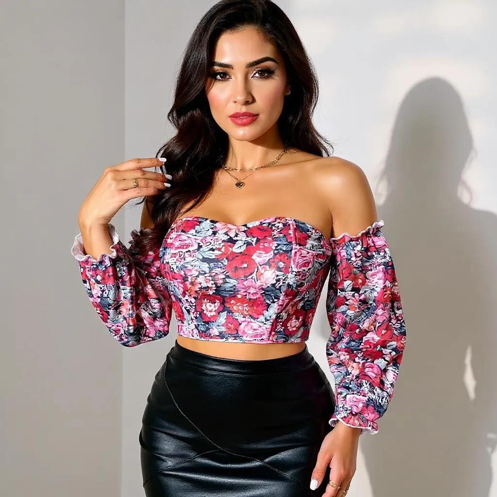 Top monospalla con maniche a palloncino e stampa floreale | ULZZANG BELLA